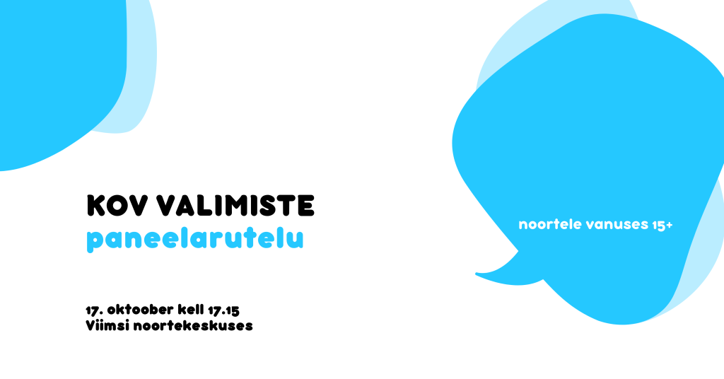 Hea noor! Meil on hea meel teid kutsuda KOV valimiste paneelarutelule, mis toimub 17. oktoober kell 17.15 Viimsi noortekeskuses (Randvere tee 9, Haabneeme). Paneelarutelul on võimalik Viimsi vallas kandideerivate erakondade …