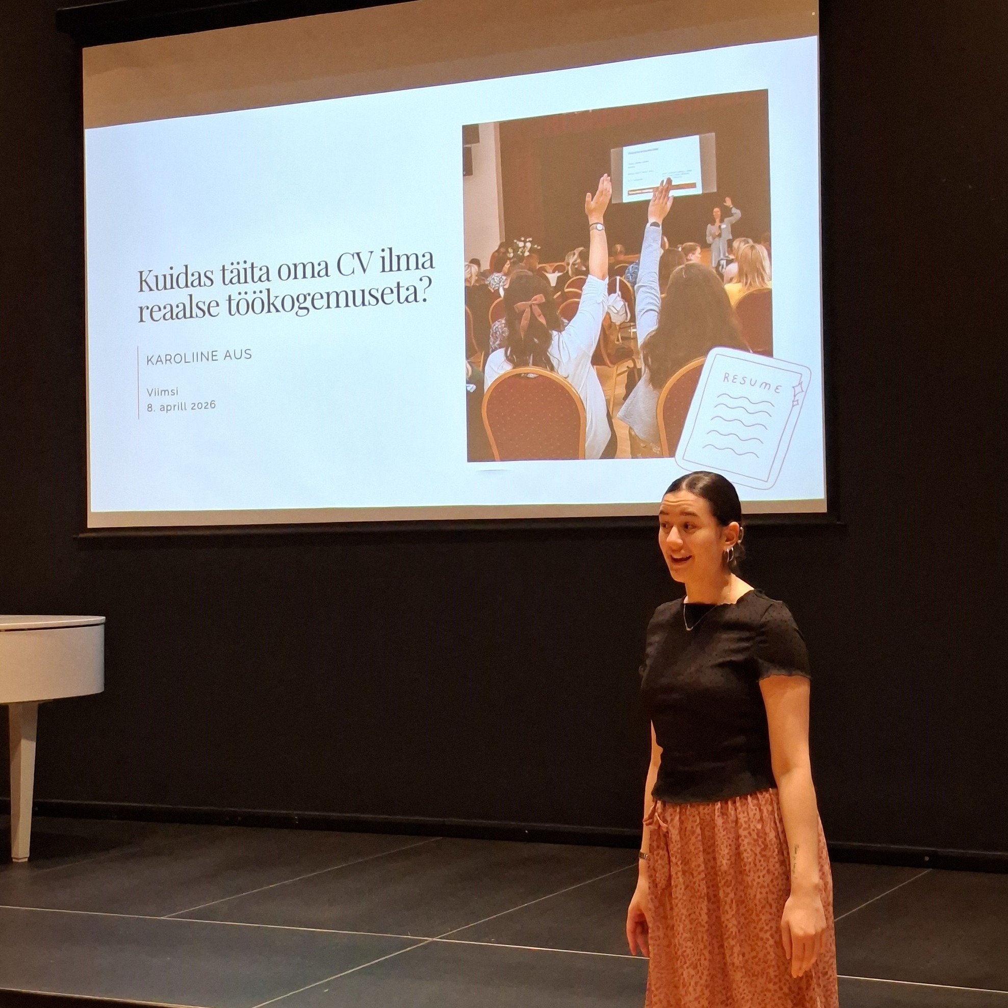 Seekord oli ümarlaua külaliseks Karoline Aus, kes jagas oma kogemusi ning tegi ettekande teemal “Kuidas täita oma CV ilma reaalse töökogemuseta”. Karoline rääkis oma kogemustest õpilasesinduses, noortekogus ja reporterina tegutsedes ning sellest, kuidas ta jõudis noorsootööni. Samuti tõi ta esile, kuidas noorsootöö valdkond on teda toetanud ja milliseid võimalusi pakkunud. Oluline roll tema arengus on olnud ka rahvusvahelisel kogemusel Erasmus+ projektides osalemise kaudu.
