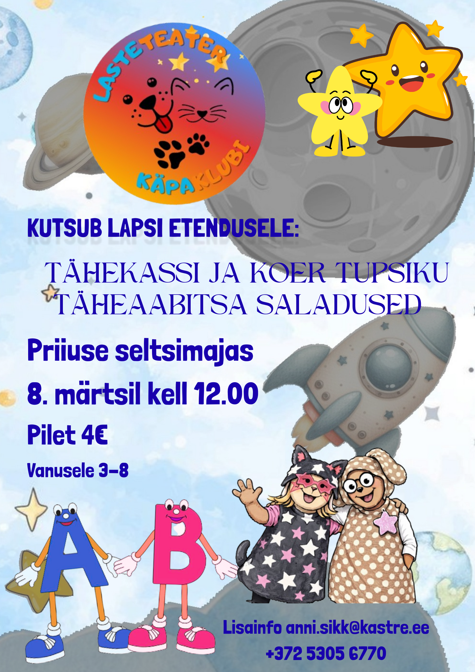 Lavastus „Tähekassi ja Koer Tupsiku Tähe-aabitsa saladused” on täis sooja huumorit ja maagiat, kus tähed ärkavad ellu, teevad häält ja muutuvad sõnadeks. Koos Tähekassi, Tupsiku ja Professor Aabitssteiniga avastavad lapsed, et lugemine ja tähed on põnev salakeel, mida igaüks saab õppida mõistma.