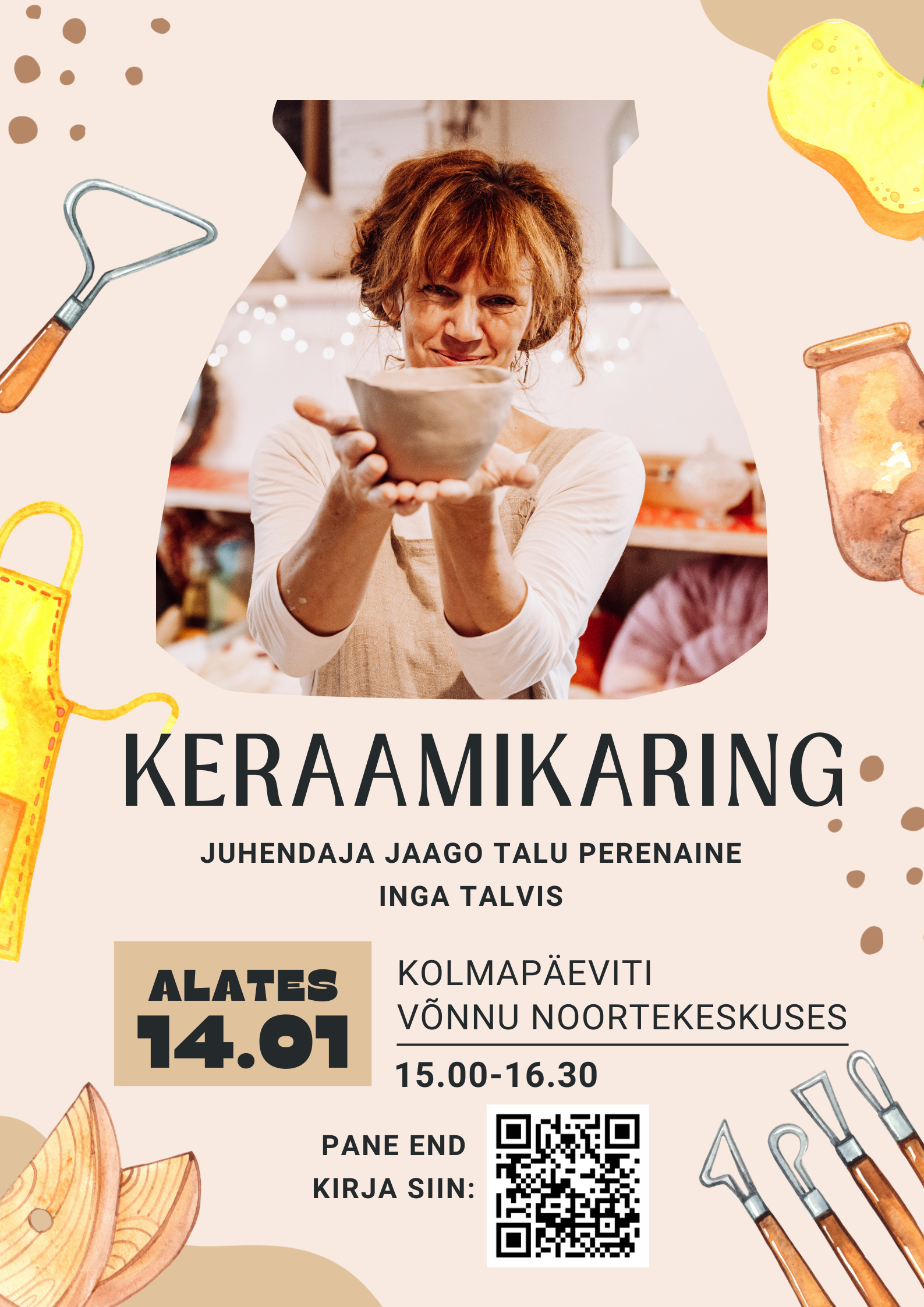 Keraamikaring on noortele tasuta, kuid ringi toimumiseks on vaja registreeruda.