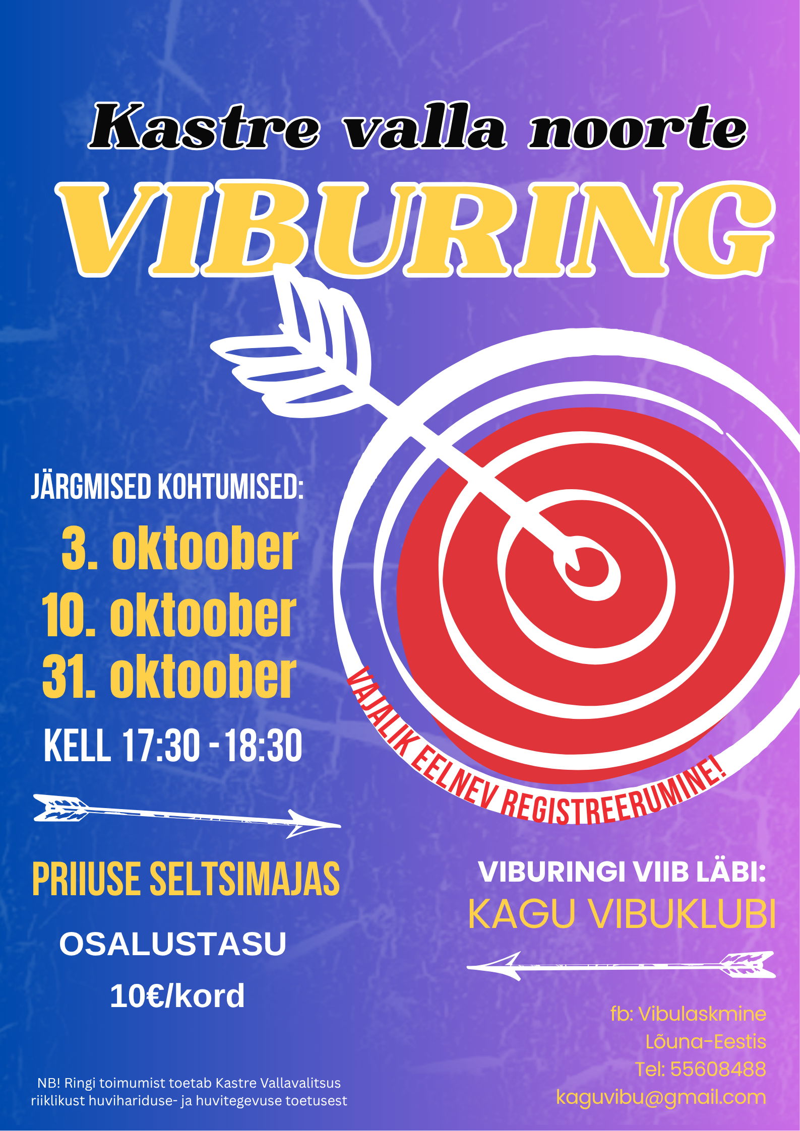 Kas oled vähemalt 7-aastane ja tahaksid proovida vibulaskmist? Tule osalema Kastre valla noorte viburingis!