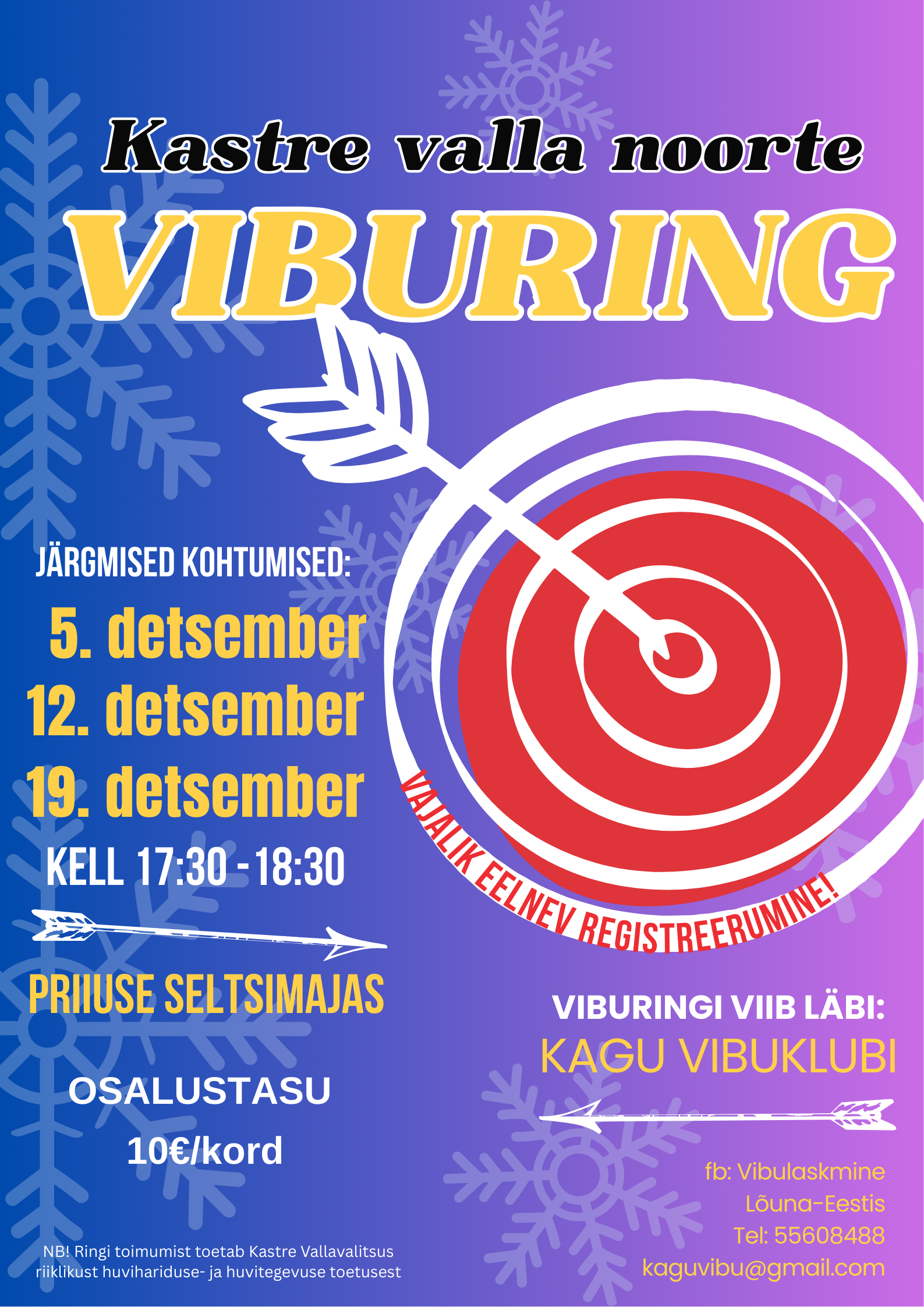Kas oled vähemalt 7-aastane ja tahaksid proovida vibulaskmist? Tule osalema Kastre valla noorte viburingis!