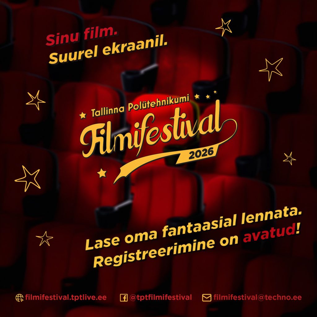 Tallinna Polütehnikumi Filmifestival kutsub noori esitama festivalile lühifilme. Filme saab esitada neljas kategoorias: dokumentaalfilm, animafilm, mängufilm, sarja pilootosa. Filmide esitamise tähtaeg on 24. aprill 2026. Filmitegijate galaõhtu toimub 29. mail …